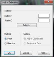 Stations: The station names may be entered manually, or they may be entered by clicking on the Select button to graphically select each of the stations, both the initial and the reference station.