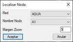 Seleccionamos la red y el nodo que deseamos localizar y presionamos el botón “Aceptar”, automáticamente se ejecutará un zoom al nodo en cuestión.