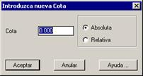 En Cota introducimos el valor de la nueva cota que deseamos y si el desplazamiento en cota va a ser Absoluto o Relativo, es decir, cambia a la cota introducida o incrementa con respecto a la cota existente respectivamente.