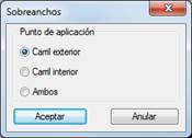 Sobreanchos (extensión .SOB): contiene los sobreanchos asociados al eje, en el caso de existir. Es opcional. Al seleccionar el fichero de sobreanchos nos aparecerá una ventana en la cual tendremos que indicar en que vector deseamos aplicarlo.