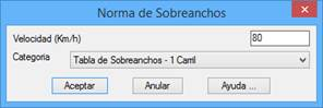 Los sobreanchos se generarán según la normativa de carretera del país seleccionado, actualmente MDT tiene la posibilidad de trabajar con las normativas de diferentes países (España, Brasil, Portugal, Andorra …), el software está preparado para que el propio usuario puede modificar o incorporar sus propias normativas.