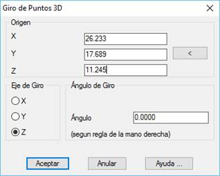 Este comando es similar al comando anterior con la particularidad de que el giro lo realiza en 3D. Al ejecutar el comando nos aparece la siguiente ventana: