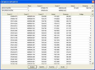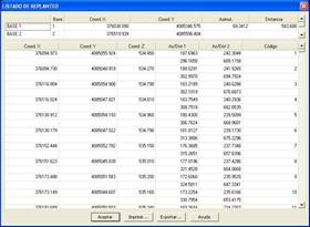 Por medio de este comando podemos obtener listados en pantalla e impresora de los datos de replanteo por polares o bisección de un conjunto de puntos pertenecientes al dibujo actual.