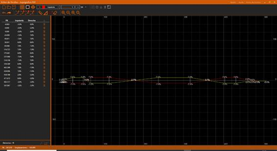 ·Panel de peraltes: Bajo la barra de herramientas, a la izquierda podemos ver un panel con la información de los peraltes.