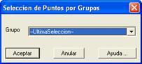 La presente alternativa, una vez creados los grupos de puntos correspondientes, hace posible la selección de dichos grupos de forma individual. En la ventana selección por grupos se listan todos los grupos de puntos creados en el dibujo.